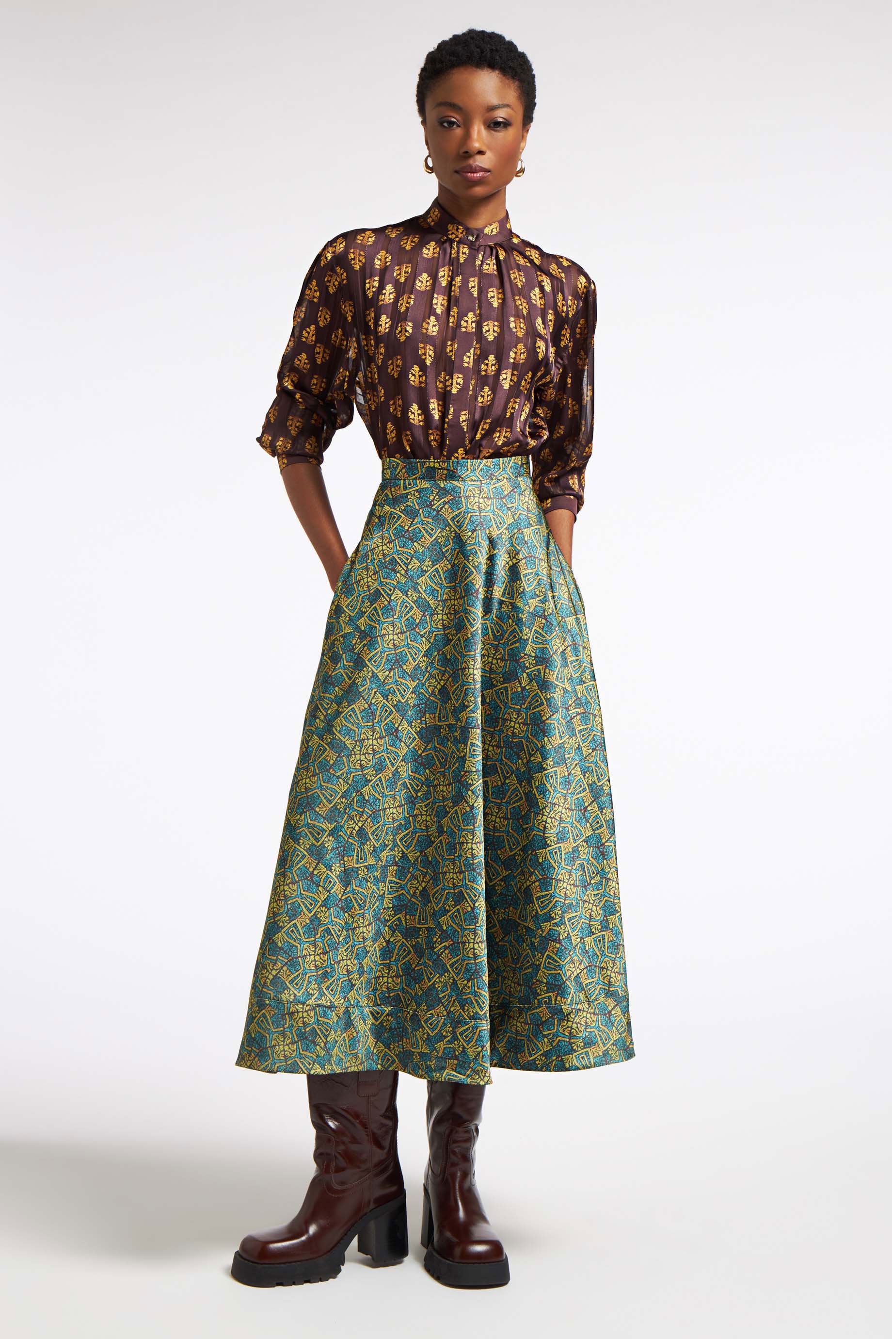 Luxury redefined through masterful print mixing and expressive design.