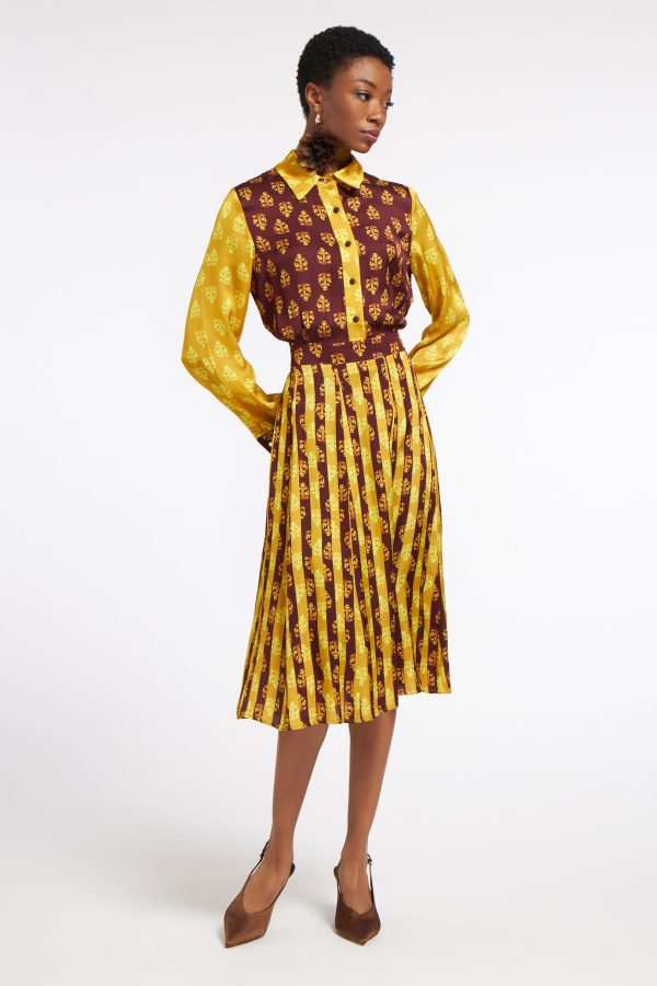 It features long sleeves with buttoned cuffs and a defined waist that flatters the silhouette.