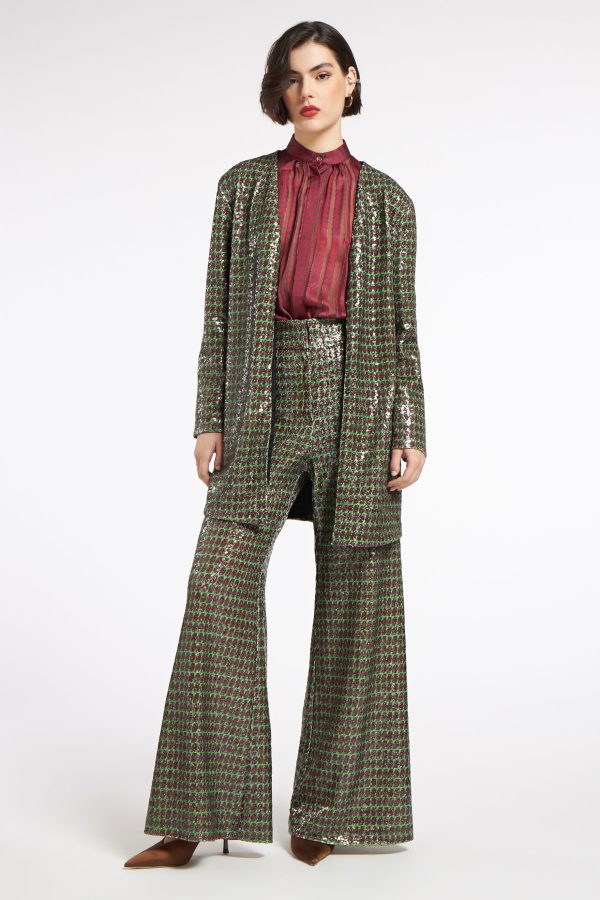 Wear it with the matching zoom in shimmering shirt for a dazzling outfit.